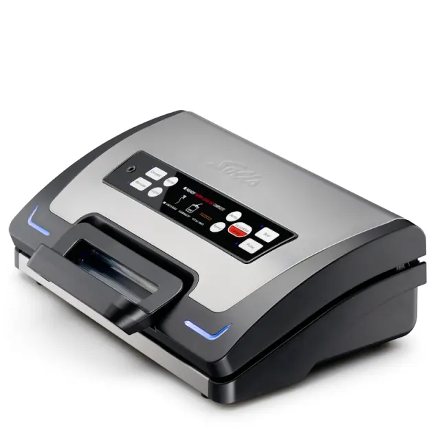 Ste s tržnice prinesli sveže ribe, sočne jagode ali oster sir? Ste skuhali nekaj porcij, pa jih ne želite pojesti vseh takoj? Vakuumski aparat Solis Vac Wet & Dry vam pomaga shranjevati in ohranjati sveže kupljeno hrano vsak dan in veliko dlje. Njegova zmogljiva vakuumska črpalka v trenutku vakuumira vašo hrano s tlakom do -0,9 bara.