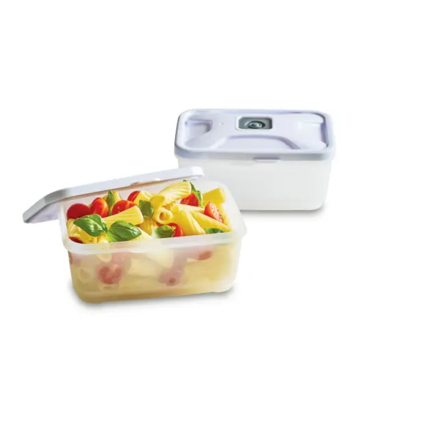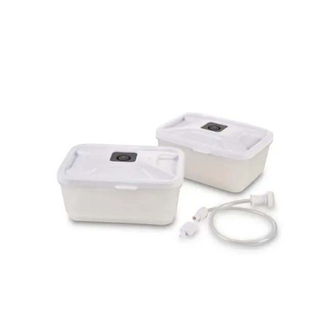 Ste v supermarketu kupili sveže narezke s sirom ali klobasami, pa jih ne morete porabiti takoj? Ali ste že skuhali hrano za odmor za kosilo v pisarni? Praktične vakuumske škatle za kosilo Solis so idealne za čim daljše shranjevanje in transport odprte in pripravljene hrane v hladilniku ali zamrzovalniku. Enostavno uporabite škatle s svojim sesalnikom. Hermetično zaprt in shranjen v suhem prostoru. To vam omogoča veliko daljši rok uporabnosti vaše hrane. Varno zapakirano lahko udobno vzamete kosilo v službo in ga med odmorom za kosilo preprosto pogrejete neposredno v škatlah v mikrovalovni pečici.