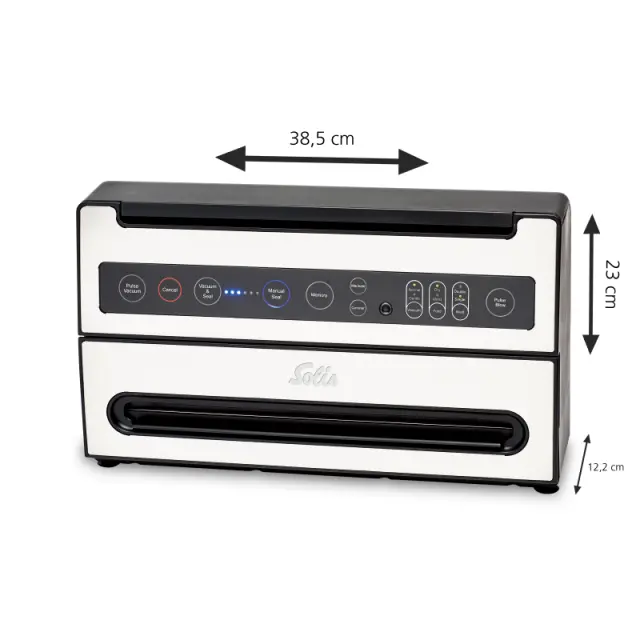 S svojo edinstveno funkcijo Pulse Blow, Solis VertiVac Plus je Solis VertiVac Plus naš najbolj vsestranski sistem za vakuumsko pakiranje. Ta funkcija omogoča polnjenje vrečk z zrakom – za čips, marshmallow piškote in podobna živila z nežno teksturo. To funkcijo lahko uporabite celo za zaščito izdelkov, ki niso živila in se lahko hitro zmečkajo ter poškodujejo.