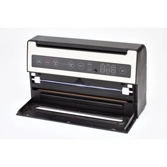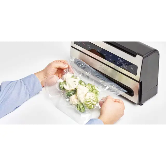 Njegova funkcija Vacuum & Seal popolnoma samodejno posesa in zapre vrečko. S funkcijo ročnega tesnjenja lahko ustavite samodejni postopek vakuumiranja in takoj začnete s korakom tesnjenja ter tako ohranite popoln nadzor nad postopkom vakuumiranja. Funkcija vam bo prav tako v veliko pomoč, ko boste enostavno želeli iz role ustvariti vrečko in boste tako morali zapreti samo en konec vrečke.