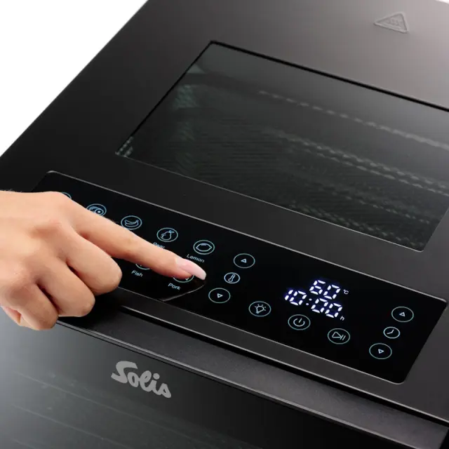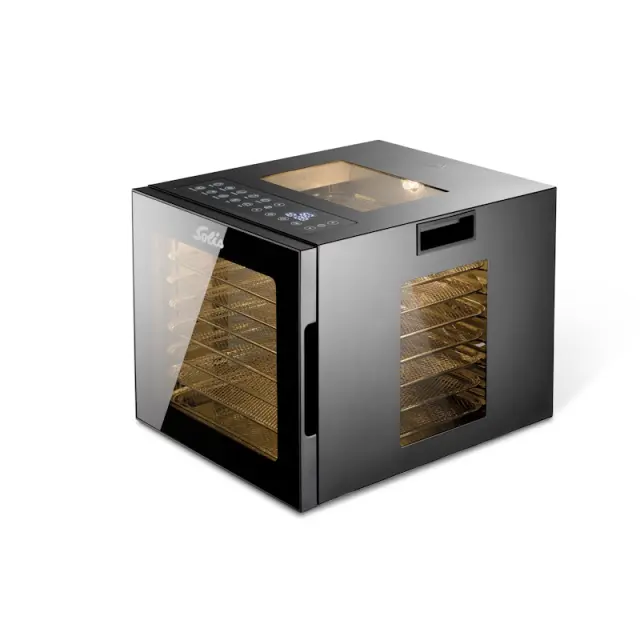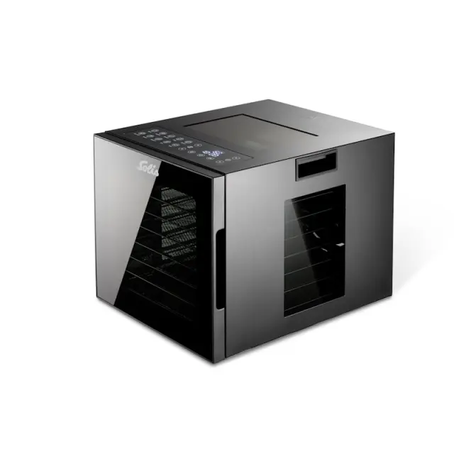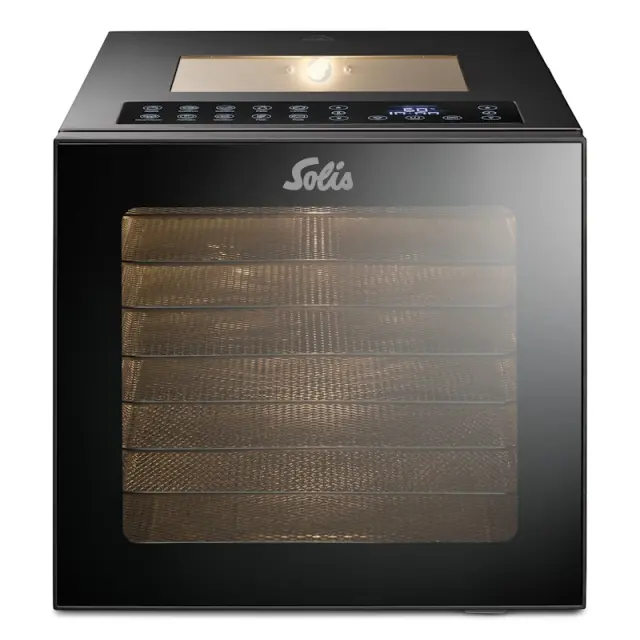 Solis VitaDry dehidrator hrane, ki omogoča enostavno sušenje sadja, zelenjave, gob, zelišč, mesa in rib. Zahvaljujoč enakomernemu kroženju zraka in natančnim nastavitvam temperature lahko brez težav ustvarite zdrave prigrizke, kot so suho sadje, zelenjavni čips in suho meso. Solis VitaDry dehidrator hrane je idealen za pripravo obrokov, konzerviranje hrane in zmanjšanje količine odpadkov.