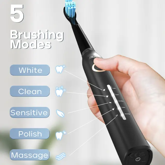 Sončna električna zobna ščetka s 5 načini čiščenja Black
