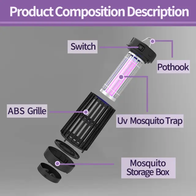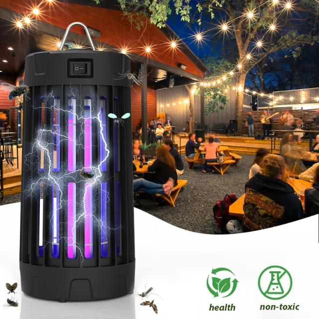 Učinkovita UV svetloba: Opremljena z UV svetlobo, ta naprava za uničevanje komarjev učinkovito privablja komarje in druge leteče žuželke. UV svetloba oddaja specifično valovno dolžino, ki je zelo privlačna za žuželke, in jih vabi proti naelektreni mreži. Ko pridejo v stik z mrežo, jih hitro in humano uniči visokonapetostni udar 2500 V. Ta metoda je učinkovita in okolju prijazna, saj zagotavlja varen in učinkovit način za nadzor populacije komarjev brez uporabe škodljivih kemikalij ali pesticidov.