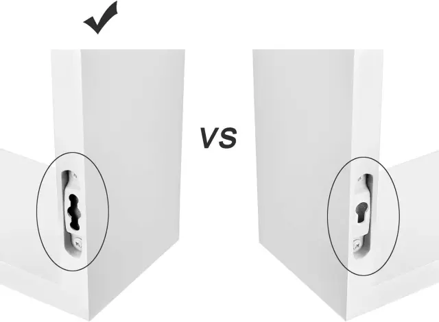 Elementi za pomoč pri montaži: Priložena so ne le razširitveni vijaki in vijaki, primerni za nevidne nosilce, ki so že nameščeni na hrbtni strani, temveč tudi jasno ilustrirana navodila