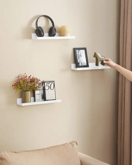 Združite te 3 police z belo površino visokega sijaja in ustvarite edinstveno dekoracijo stene, hkrati pa ustvarite dodaten prostor za shranjevanje vaših okraskov ali začimb.