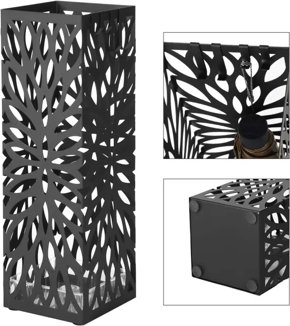 Stojalo za dežnike je čudovit in popoln dodatek k pohištvu v predsobi. Prava teža in primerna velikost omogočata, da je stojalo trdno in ohranja nered na enem mestu. Prihaja z odstranljivo plastično podlago, ki ujame vodo. Kot dekoracija prostora stojalo tudi naredi vašo dnevno sobo privlačno in prijetno.