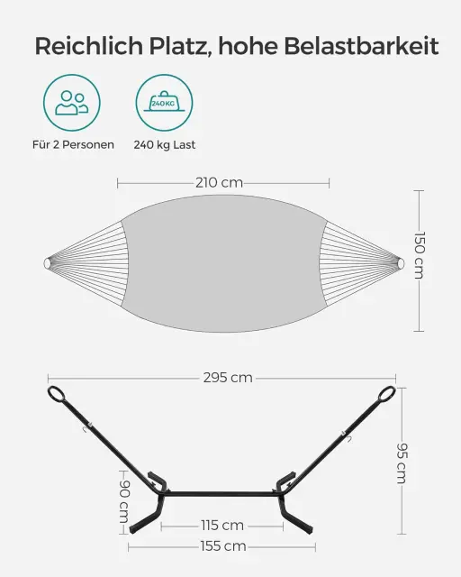 Pustite se zapeljati svojim mislim: Ne skrbite, da bi se stojalo za visečo mrežo prevrnilo. Podaljšane noge zagotavljajo dobro stabilnost stojala. Preprosto se ulezite in sprostite svoje telo in dušo