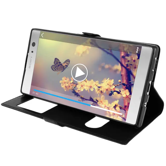 Sony Xperia XA2 etui z dvojnim oknom, video stojalo, črna