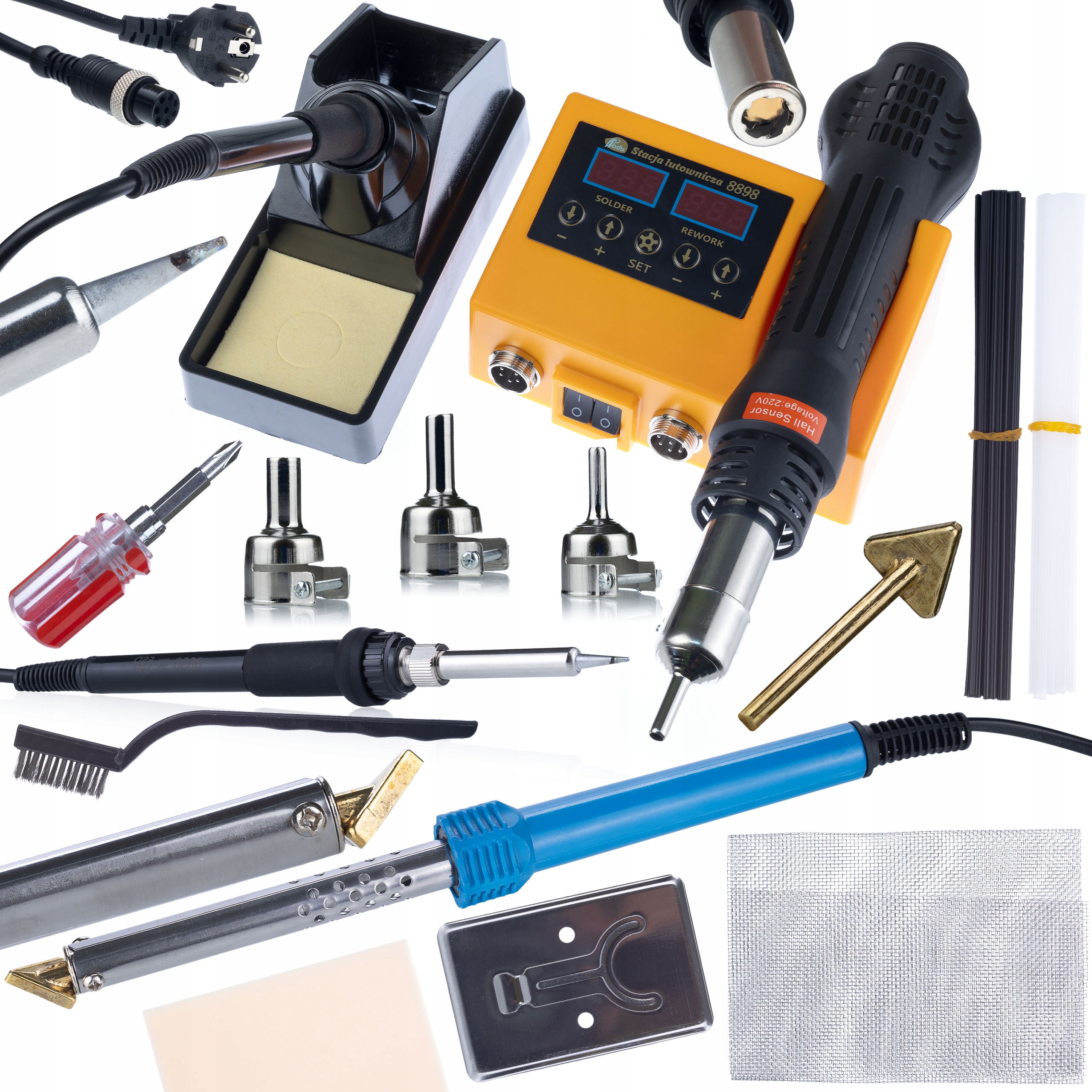 Spajkalna postaja 2v1 (Topli zrak in 900M) Rosfix Orange Husky OH660+ Spajkalnik tipa likalnik Rosfix Blue Lark 80W BL80W s kompletom dodatkov