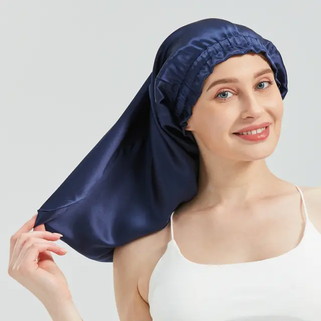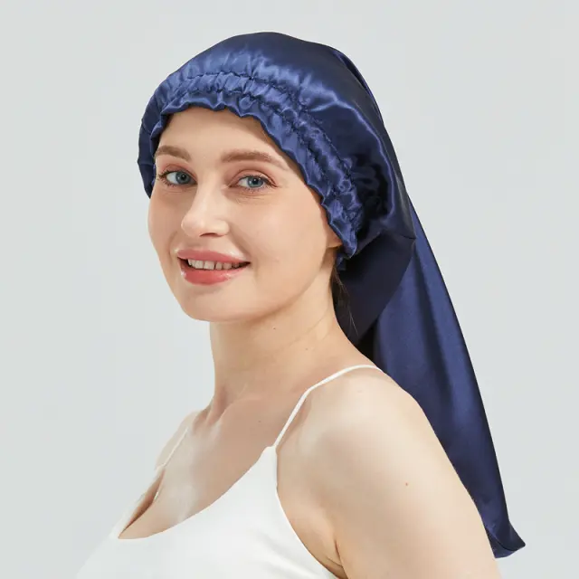 Vrhunska svila: izdelana iz 100-odstotne zgoščene svile murve 19-momme, ta dolga lasna kapa ponuja neverjetno mehak in razkošen občutek, hkrati pa je nežna do vaših las.