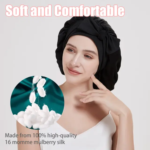 Fina murvina svila: Ta nočna kapa je izdelana iz 100 % murvine svile. Spalna kapa je gladka, mehka in lahka. Naravne lastnosti svile za uravnavanje temperature pomagajo preprečiti pregrevanje in nočno potenje.