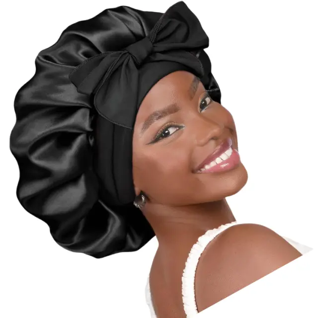 Varno in nastavljivo prileganje: Z elastičnim trakom se ta spalna kapa prilega večini velikosti glave, ne da bi se počutila pretesno ali omejujoče. Širok rob zagotavlja obilo oprijema, drži lase na mestu vso noč in preprečuje zapletanje in skodranje.