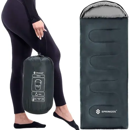 Spalna vreča s kapuco 210x73 cm, mumija, lahka, spalna vreča za kampiranje, siva.