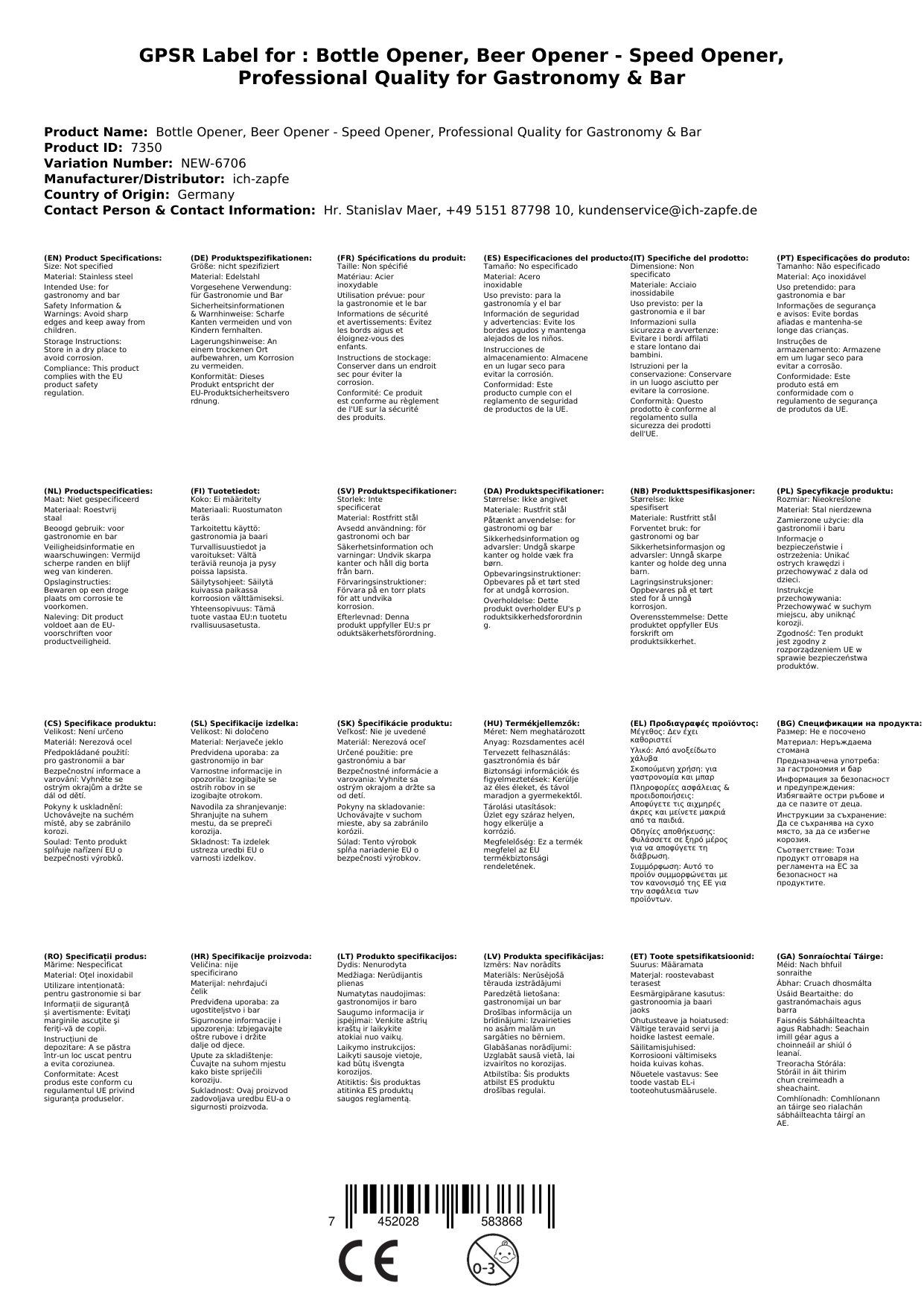 Hitri odpiralnik steklenic Speed Opener je idealen za profesionalno uporabo v gostinstvu in barih. Izdelan iz vrhunskega nerjavečega jekla, ki zagotavlja izjemno stabilnost in trajnost, tudi pri intenzivni uporabi.
