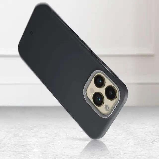 Ovitek Dusk Black Magsafe za iPhone 14 Pro Max znamke Spigen, Cyrill Ultra Color Mag. Vkljucuje magnetni krog, zaradi cesar je združljiv z dodatki Magsafe. Silikonski premaz z elegantnim dizajnom in mat teksturo. Priložen trak za zapestje.