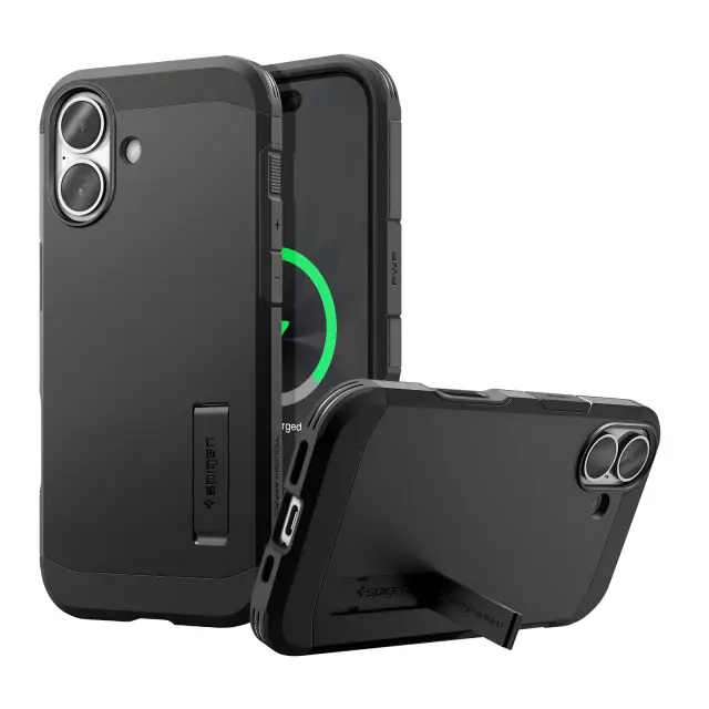 Spigen SGP, Ovitek za iPhone 17 MagSafe serija Tough Armor T MagFit z vgrajenim stojalom, Črna