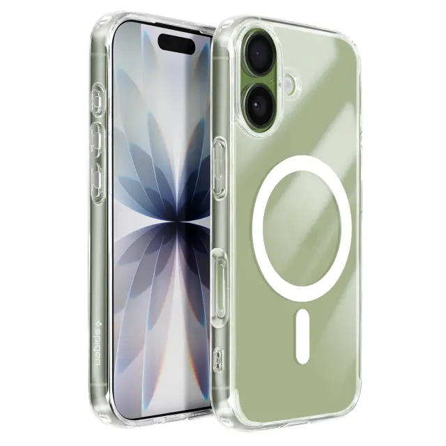 Hibridna zaščita z ojačanimi vogali Zaščita pred udarci Air Cushion. Vgrajen obroč MagSafe za stabilno magnetno polnjenje in pritrditev. Dvignjeni robovi ščitijo zaslon in kamero pred praskami in udarci. Odzivni gumbi in natančno prileganje za optimalno udobje uporabnika.