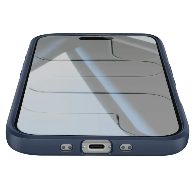 Tehnologija Air Cushion, vgrajena v vogale, za učinkovito blaženje udarcev. Mehka prevleka na dotik iz silikonskega gela, prijetna na dotik. Trikotni geometrijski vzorec v reliefu za boljši bočni oprijem. Dvignjeni robovi okoli zaslona in kamere za preprečevanje prask.