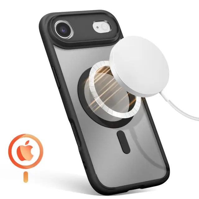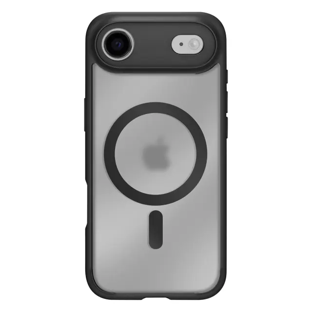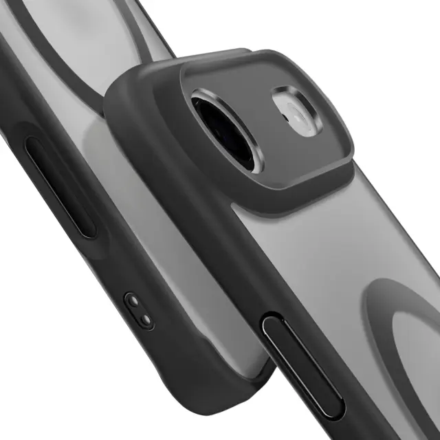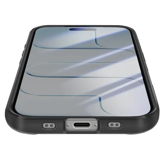 Hibridna zaščita z ojačanimi vogali Zaščita pred udarci Air Cushion. Vgrajen obroč MagSafe za stabilno magnetno polnjenje in pritrditev. Dvignjeni robovi ščitijo zaslon in kamero pred praskami in udarci. Odzivni gumbi in natančno prileganje za optimalno udobje uporabnika.