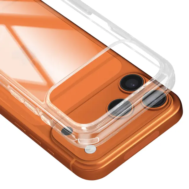 Vgrajena tehnologija Air Cushion, usmerjeno blaženje udarcev na vogalih, idealna za nenamerne padce in vsakodnevne udarce.. Ojačana struktura iz dveh materialov za optimalno vzdržljivost. Dvignjeni robovi preprečujejo neposreden stik s površino, kar zmanjšuje nevarnost prask.. Tanka, prozorna zasnova ohranja izvirni videz telefona iPhone, hkrati pa zagotavlja varen oprijem.