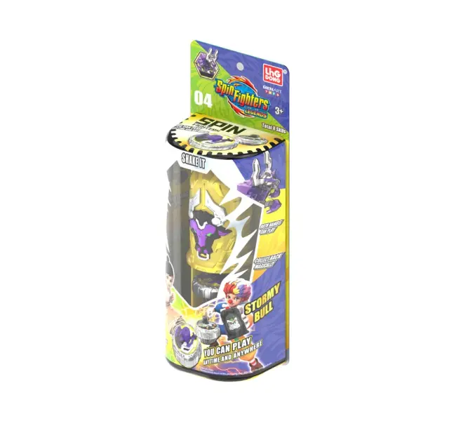 Akcijska vrtavka iz serije Spin Fighters Legends z motivom Stormy Bull. Namenjena dinamičnim dvobojem in zbiranju, primerna za otroke in ljubitelje akcijskih iger.