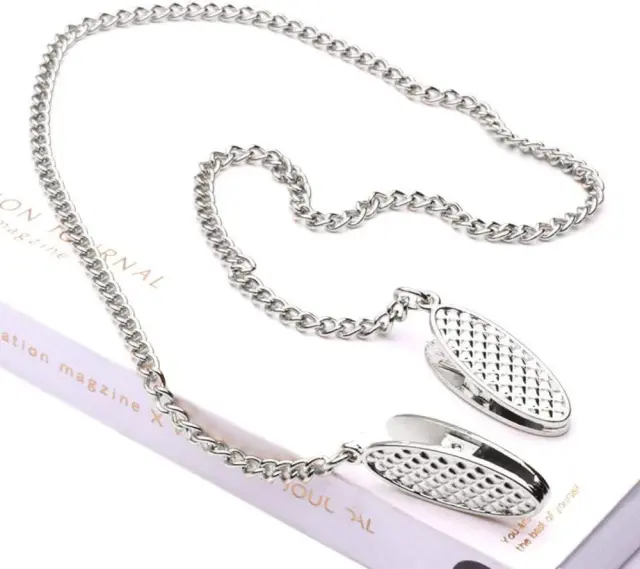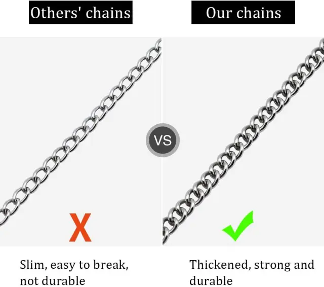 [Kakovosten material] Sponka sponke za prtičke je izdelana iz cinkove zlitine. Ugriz je gladek in ne ščipa izdelka. Verižica je izdelana iz nerjavečega jekla in je trpežna.
