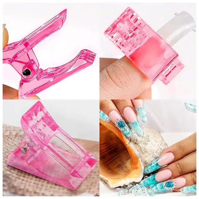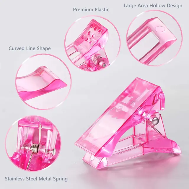 Sponke za nohte, ki se uporabljajo za pritrditev konice nohta, medtem ko se gel noht nagrajuje. Sponka je narejena iz visokokakovostne plastike in jo lahko vedno znova uporabljate za držanje konice nohta in jo prilagodite svojemu naravnemu nohtu.