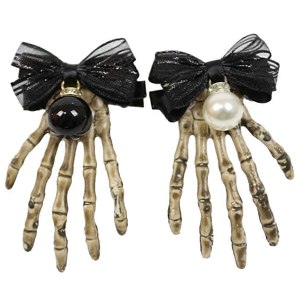 Sponke za lase v obliki ročne lobanje, kreativno okrasno pokrivalo za noč čarovnic, 7 x 4,5 cm, črni biser, 2 kosa