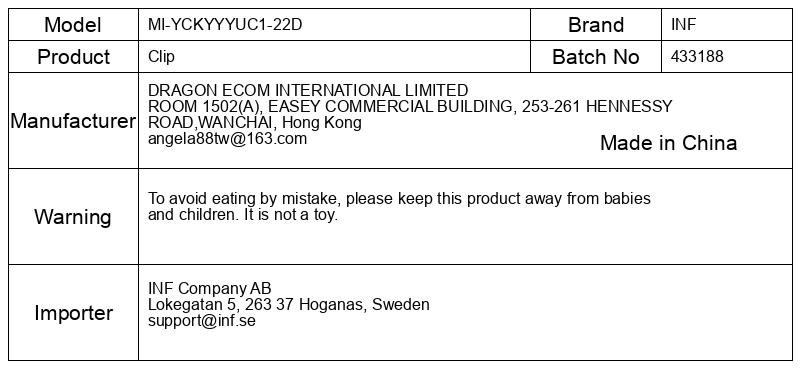 Da ne bi pomotoma zaužili tega izdelka, hranite izven dosega dojenčkov in otrok. To ni igrača.