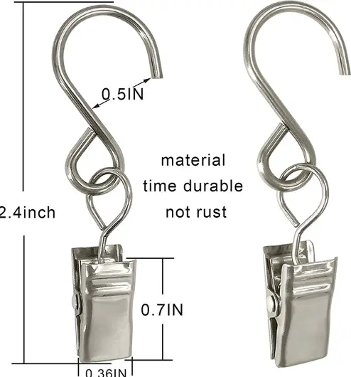 Majhne, robustne sponke z S-kavlji za obešanje, na primer, na karniso. Sponke so odporne proti rji in primerne tudi za obešanje drugih predmetov, kot so verižne lučke, majhna darila in drugi lepi DIY projekti.