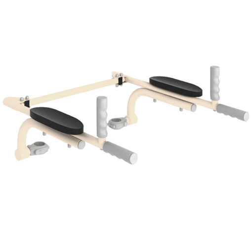 S trebušnimi ograjami, ki so trajno nameščene na gimnastično lestev, se otroška lestev spremeni v domačo telovadnico za starše. Držala pomagajo pri vadbi trebušnih mišic ter mišic rok in prsnega koša. Držala imajo mehke naslone za roke in zaobljene ročaje z nedrsečo prevleko. Ročaji za dvigovanje so iz skupine fitnes pripomočkov za odrasle za gimnastične lestve poleg klopi za vadbo in stojala za uteži. Ročaj za dvigovanje je trajno pritrjen na gimnastično lestev, ko ga ne uporabljate, pa se enostavno zloži v pokončen položaj in umakne v prostor med lestvijo in stransko steno.