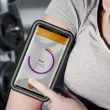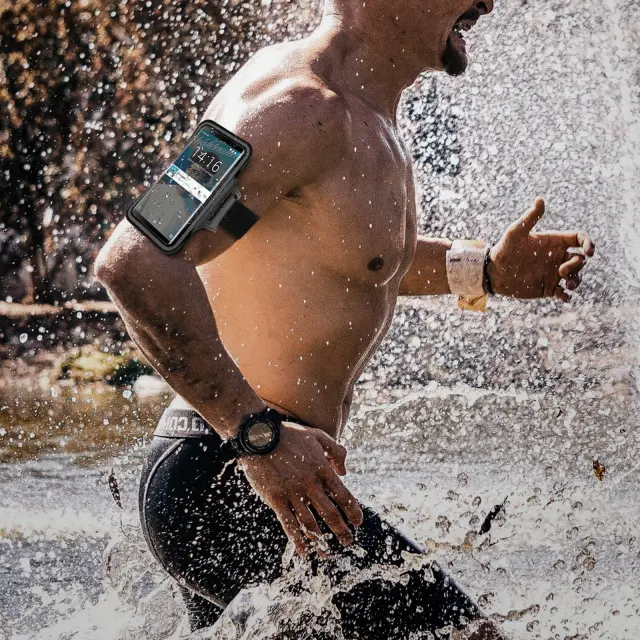 Športni trak iz neoprena s satenasto vodoodporno prevleko. Združljiv z vsemi pametnimi telefoni z največjo velikostjo pribl. 180 mm v dolžino in 105 mm v največjo dolžino. Prozorno okno, občutljivo na dotik, ohranja interakcijo zaslona, občutljivost in barvno upodabljanje. Elastičen in praskam nastavljiv trak - Obseg roke min. 26 cm - maks. 41 cm.