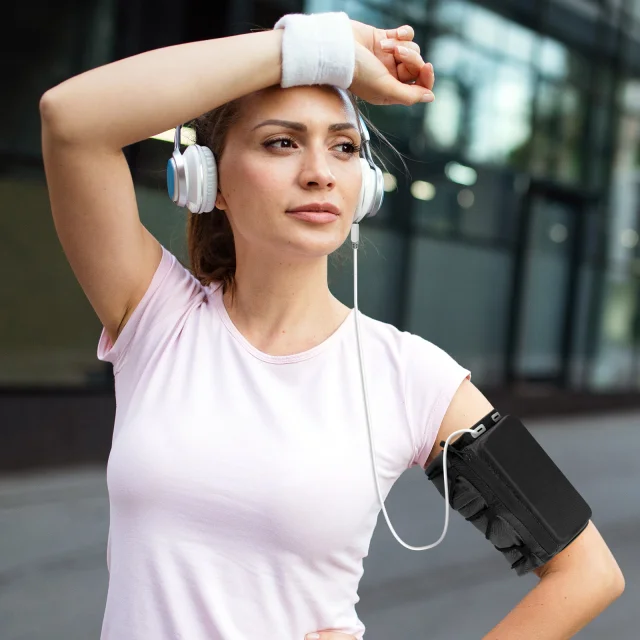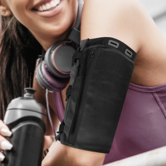 Športni trak s cipko, prostor za shranjevanje pametnega telefona z zadrgo - crn