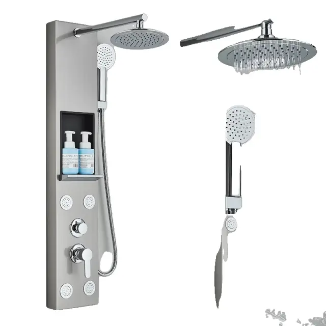 Sprchový panel s batériou, masážny jet, dažďová sprcha - niklový-F-7001