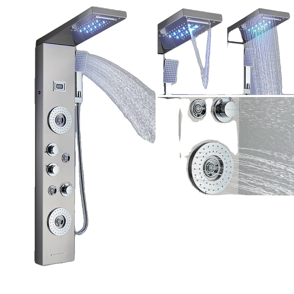 Sprchový systém, ovládanie s dvoma rukoväťami, modré LED osvetlenie - Brúsený nikl 8029X