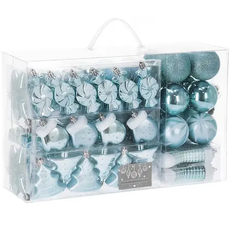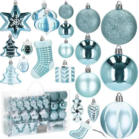 SPRINGOS kroglice za božično drevo 77 kos. Modri ​​komplet okraskov za božično drevo, dekoracija za božično zabavo, poročni okraski, borovi storži, da