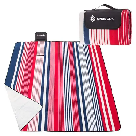 SPRINGOS Piknik odeja 200 x 160 cm Rdeče črte, Outdoor odeja Pokrivalo za avto Brisača za na plažo Sedežna podloga.