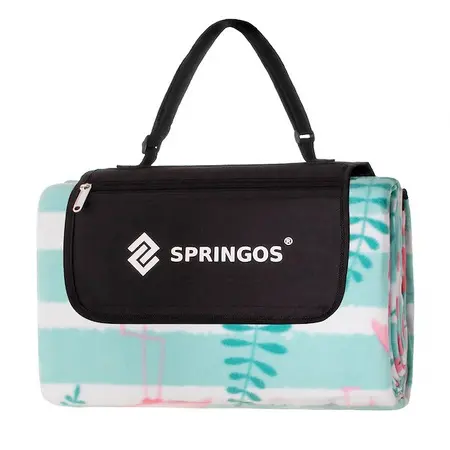 Odeja za piknik SPRINGOS je praktičen spremljevalec za vso družino ali prijatelje. Zgoraj je prijetno mehka in jo je mogoče zložiti, zaradi česar je idealna za piknike, počitnice na plaži ali peko na žaru. Zahvaljujoč praktičnemu traku iz tkanega poliestra je zabava na pikniku zagotovljena. Prednosti te odeje za piknik SPRINGOS je veliko: enostavno zlaganje, nepremočljiv osnovni material in praktičen trak za nošenje. Zložena odeja zavzame zelo malo prostora. Udobna zunanja odeja v čudovitih svetlih barvah se lahko šteje tudi za otroško igralno odejo. Lastnosti izdelka: Zgornji del: 100% flis Spodnji material: 2 mm pena, aluminijasta folija Površina: 200 x 200 cm Ročaj za prenašanje Barva: mint Tisk: flamingo Primerno za žar, plažo, piknik, odejo za avto, odejo za plažo, otroško odejo za vrt Aluminijasta folija vas vedno ohranja suhe na mokri travi Enostavno shranjevanje Barve se lahko nekoliko razlikujejo od resničnih, odvisno od parametrov zaslona.