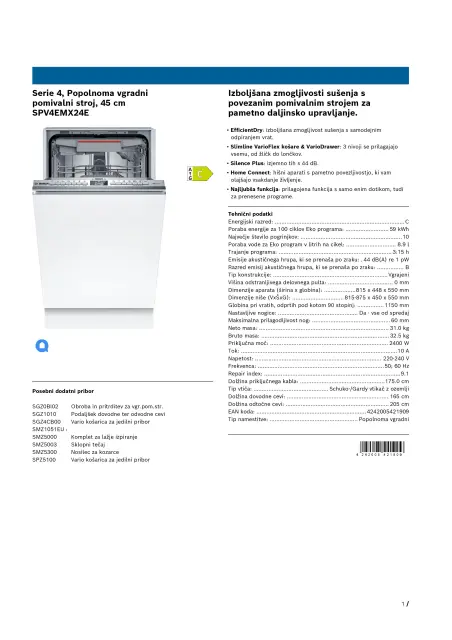 Odprta emb - BOSCH SPV4EMX24E vgradni pomivalni stroj