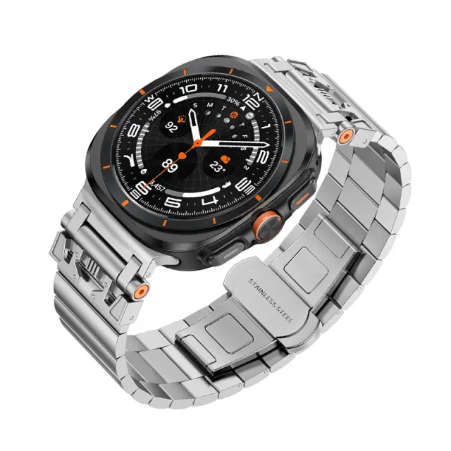 Nerjaveče jeklo vrhunske kakovosti: Ta pašček za uro, izdelan iz visokokakovostnega nerjavečega jekla, ponuja izjemno trdnost in odpornost ter zagotavlja dolgotrajno delovanje. Njegova polirana površina izžareva eleganten in prefinjen videz, ki se poda tako k ležernemu kot tudi k formalnemu slogu.