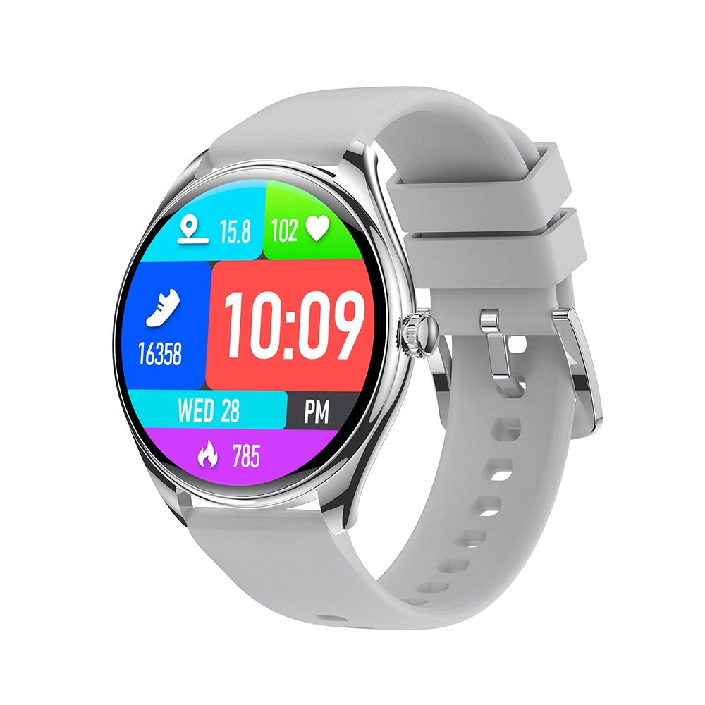 Srebrna pametna ura s sivim silikonskim paščkom - Bluetooth klic, merjenje srčnega utripa in spanja