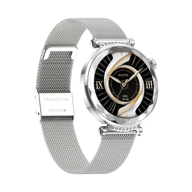 Srebrna pametna ura z nerjavečim jeklenim pasom - Bluetooth klic in spremljanje zdravja