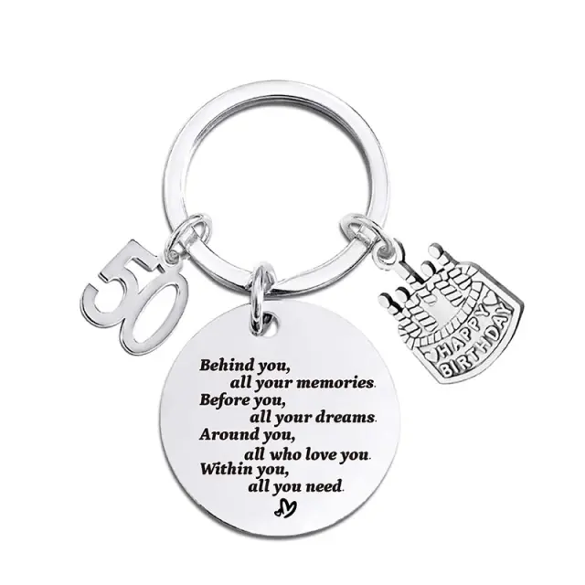 Personaliziran dizajn: Ta okrogel obesek za ključe ima eleganten srebrn zaključek in ga je mogoče gravirati po meri, zaradi česar je premišljeno in edinstveno darilo za obletnice, rojstne dneve ali katero koli posebno priložnost.
