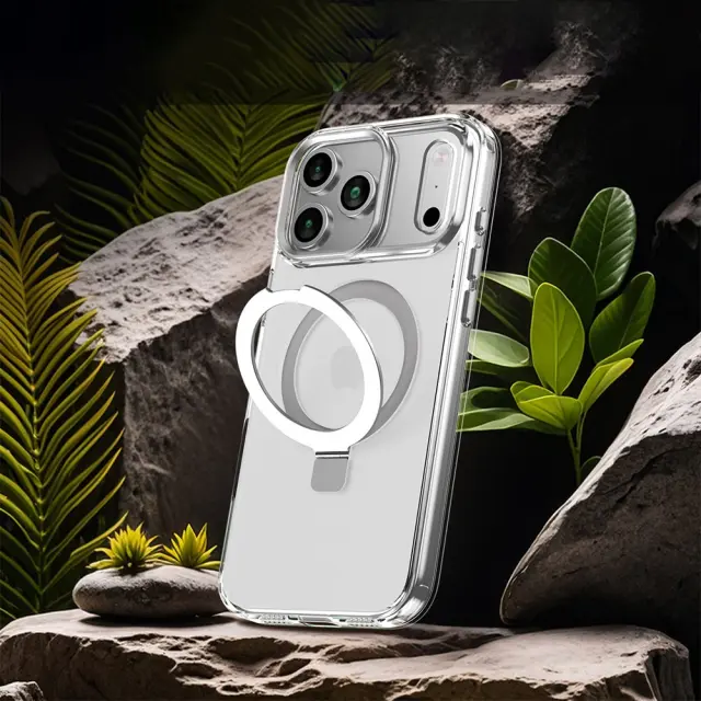 Integrirano stojalo: Vgrajeno magnetno stojalo omogoča priročno prostoročno gledanje. Ne glede na to, ali gledate videoposnetke, opravljate video konference ali brskate po spletu, vam stojalo omogoča, da svoj iPhone 12 Pro Max podprete pod udobnim kotom. Magnetna zasnova zagotavlja, da stojalo ostane varno na mestu in preprečuje nenamerne zrušitve. Stojalo je diskretno integrirano v ohišje, kar ohranja eleganten in poenostavljen profil, ko ni v uporabi. Ta funkcija je kot nalašč za uporabnike, ki pogosto uživajo v medijih ali se ukvarjajo z video klici na svojem iPhone 12 Pro Max, kar izboljšuje njihovo splošno uporabniško izkušnjo.