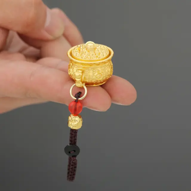Izvrstna zasnova: Ta obesek za ključe ima edinstveno in zapleteno zasnovo, ki združuje ugodne simbole hranilnika, lonca bogastva, ki se preliva z zlatimi ingoti, in močnega amuleta Pixiu. Hranilnik predstavlja prihranke in blaginost, lonec bogastva simbolizira obilje in srečo, Pixiu pa naj bi privlačil bogastvo in odganjal zle duhove.