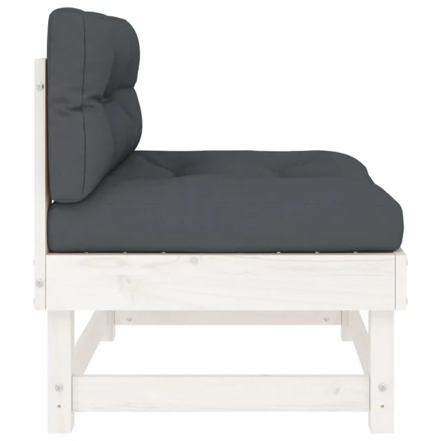 Sredinski kavč - Sofa - Kanape z blazinami 2 kosa bela trdna borovina