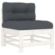 Sredinski kavč - Sofa - Kanape z blazinami 2 kosa bela trdna borovina