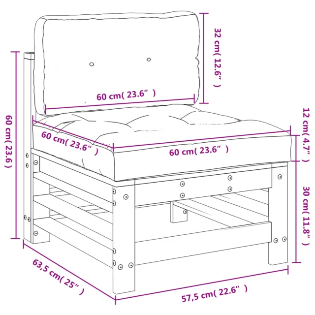 • Dimenzije blazine za sedež: 60 x 60 x 12 cm (D x Š x D)