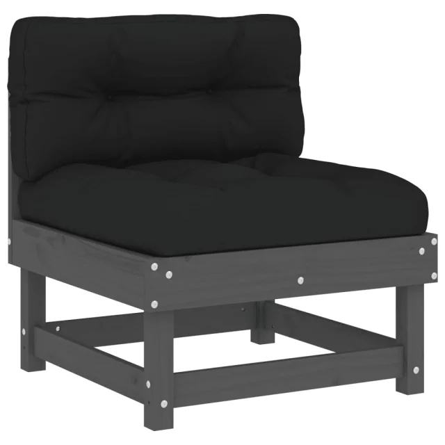 Sredinski kavč - Sofa - Kanape z blazinami siva trdna borovina