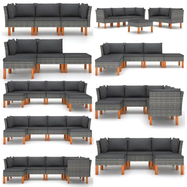 Sredinski kavč - Sofa - Kanapei 2 kosa poli ratan in trden evkaliptusov les